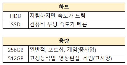 어느 정도의 스펙와 용량을 갖춘