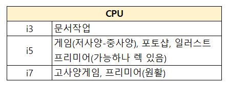 i5 이상을 추천해요.