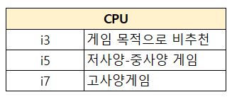 게임을 하려면 최소 i5 이상을 추천