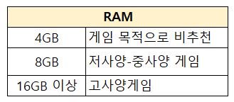 최소 8GB 이상을 추천